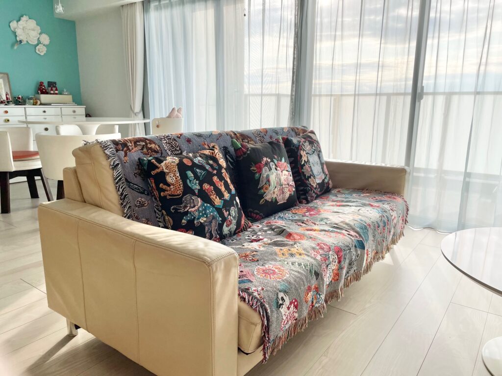- ソファの背もたれを整える