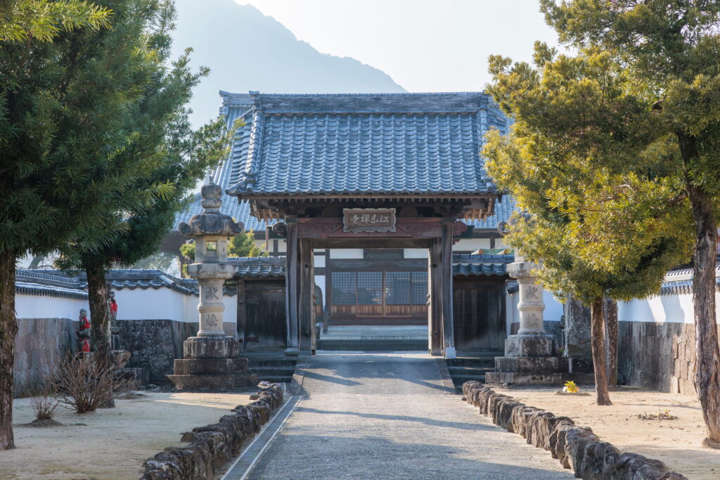 島原城主・松倉重政らの墓所である江東寺。その供養のため1957(昭和32)年に建立されたのが、全長約8m、鉄筋コンクリート造りの涅槃像。海に向かって寝そべるご尊顔は”イケメン”と評判です。ちなみに同寺は、江戸時代の眉山崩壊(島原大変)で流失し、同市崩山町から現在の地で再建されたそうです。