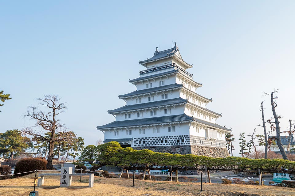 まずは同市のシンボル島原城へ。1618(元和4)年から7年の歳月をかけて築城された白亜五層の天守閣は、堂々かつ優美なたたずまい。城の西側には江戸時代に迷い込んだ気分になる島原武家屋敷が立ち並びます。3棟の屋敷が無料公開されているので、武士の暮らしを垣間見ることができますよ。
